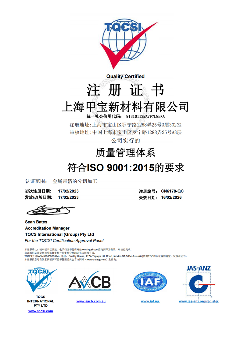 甲寶金屬材料(上海)有限公司主要從事于高精密、高性能、超薄材料的研發(fā)、生產(chǎn)、銷售。致力于新技術(shù)、新材料的研發(fā)和推廣應(yīng)用,產(chǎn)品廣泛應(yīng)用于電子電器、電子屏蔽、航空航天、智能汽車、醫(yī)療器械、能源裝備、石墨烯、鋰電池、5G通訊等領(lǐng)域。